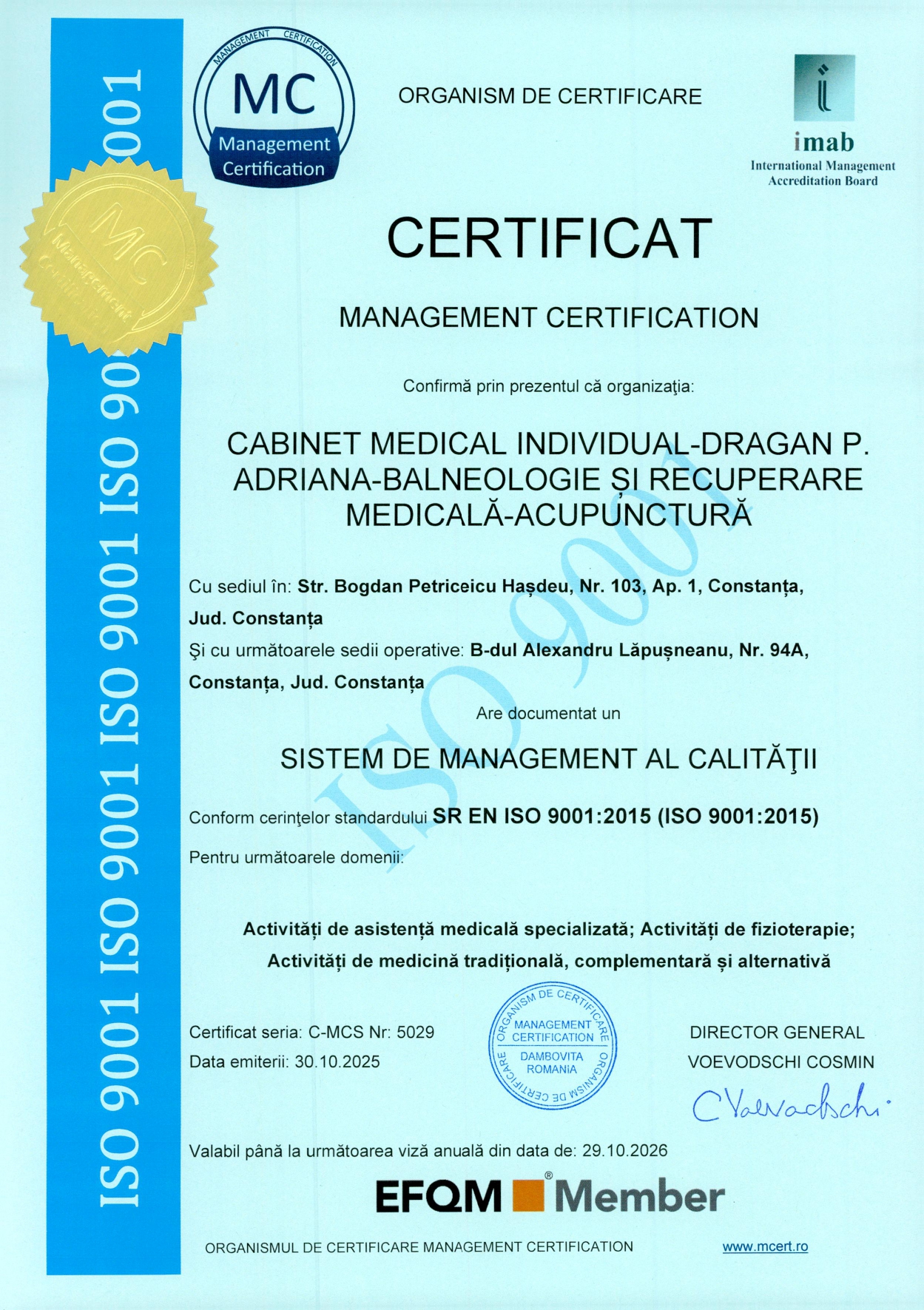 Aceste certificări demonstrează că toate procesele noastre: de la programare și evaluare medicală până la tratament, protecția datelor și siguranța operațională, sunt gestionate prin proceduri riguroase. Totodată, confirmă angajamentul nostru pentru servicii medicale de înaltă calitate, transparență și îmbunătățire continuă a experienței pacienților.